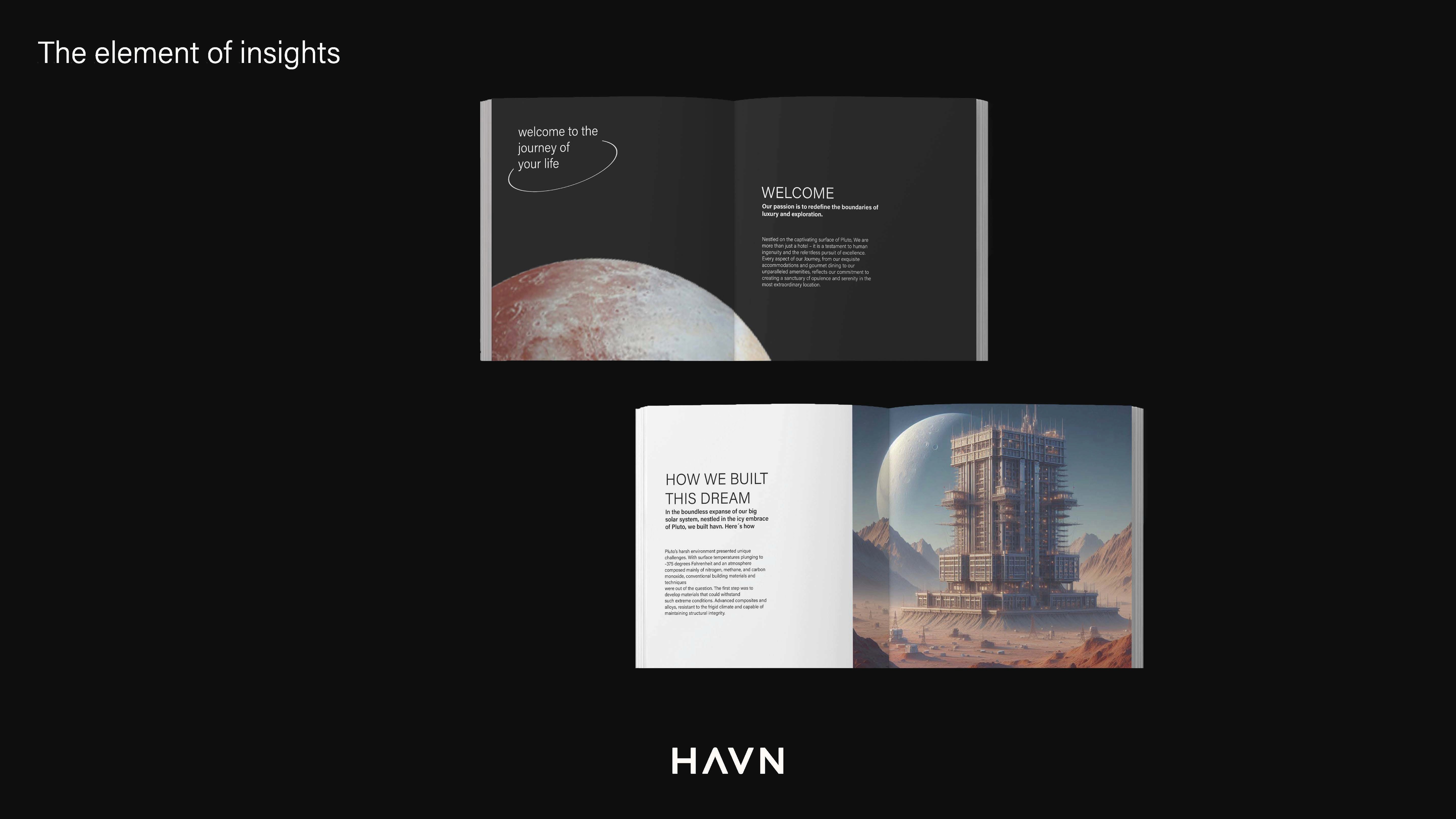 In a future where interstellar travel is part of everyday life, Havn was imagined as a sanctuary among the stars — a place shaped by wonder, elegance, and comfort. Created as more than a hotel brand, Havn serves as a cosmic refuge for travelers drifting between worlds.
